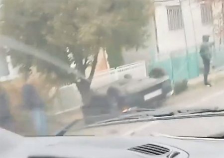 Від сильного удару одне з авто перекинулося на дах, інше – із повністю зім’ятою передньою частиною відкинуло на узбіччя. Ймовірно, мова йде про лобове зіткнення.