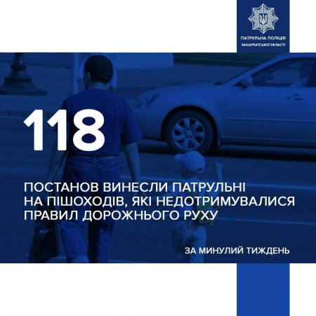 Протягом попереднього тижня, з 24 до 30 жовтня, патрульні Закарпаття притягнули до відповідальності 118 пішоходів, які не дотримувалися правил дорожнього руху