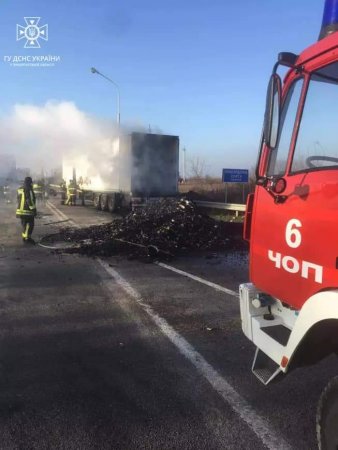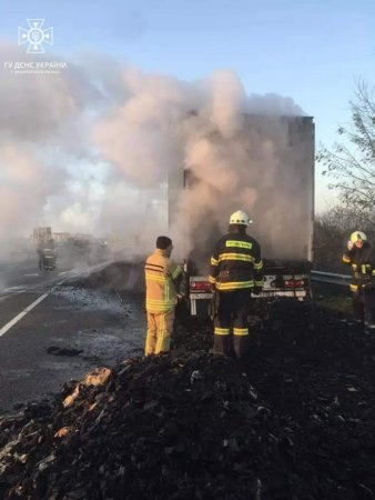 Подія сталася ввечері 17 грудня. Пожежа охопила причіп вантажного автомобіля Volvo, завантажений деревним вугіллям.