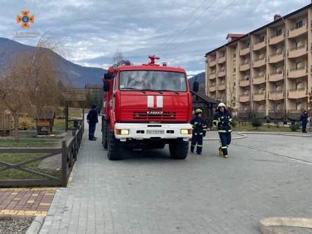 Сьогодні в санаторії «Гірська Тиса» «горів» другий поверх спального корпусу. Не лякайтеся – це бійці ДСНС м. Рахів та смт Ясіня проводили пожежно-тактичне навчання з персоналом та відпочивальниками санаторію, що в с. Кваси на Рахівщині. Згідно із задумом, відпрацьовували ліквідацію пожежі в одному з номерів на другому поверсі, де перебувала людина.