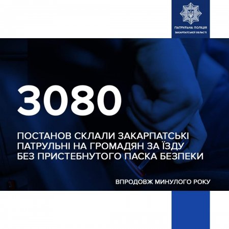 Впродовж року закарпатські патрульні склали 3080 адміністративних матеріалів за їзду без пристебнутого паска безпеки