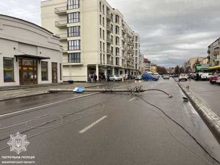В Ужгороді впали 2 дерева і потягнули за собою 4 високовольтні стовпи