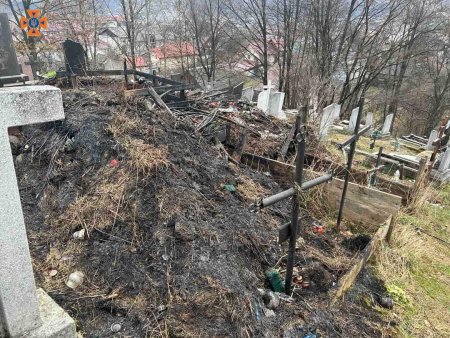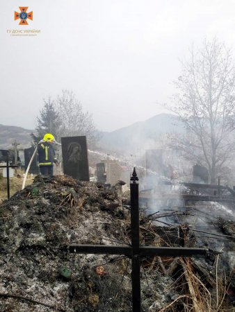 Вчора така пожежа сталася на території міського кладовища в Рахові. Як з’ясувалося, горіли сміття й суха трава, складені поміж могилами. Випадкові перехожі помітили дим та одразу ж зателефонували за номером 101.