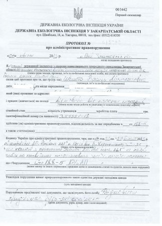 Державним інспектором з охорони навколишнього природного середовища складено адміністративний протокол за статтею 188-5 КУпАП за недопуск до проведення перевірки.