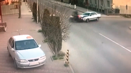 Вчора, на вулиці Івана Франко у місті Хуст сталося ДТП за участю мотоцикліста та легкового автомобіля. На відео. Яке з’явилося в соціальних мережах видно, що легковий автомобіль не пропустив мотоцикл, який рухався головною вулицею.