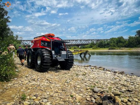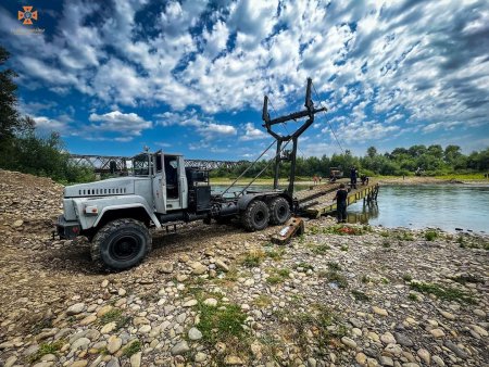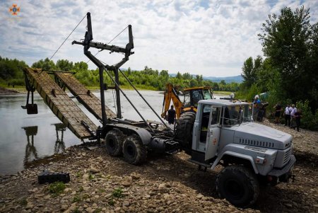 Рятувальники ДСНС встановлюють важкий механізований міст ТММ-3М1, що призначений для наведення переходів через нерівності рельєфу та може витримати техніку вагою до 60 т. Це дозволить автомобілям тимчасово рухатися автовтошляхом національного значення Н-09 «Мукачево-Рогатин-Львів».