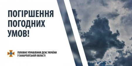 В найближчу годину, протягом дня 25 липня та в першій половині ночі 26 липня на більшій частині території Закарпатської області та по м. Ужгороду очікуються грози та значні короткочасні дощі. Під час грози шквалисте посилення вітру 15-20 м/с, місцями до 24 м/с, подекуди сильні зливові дощі, в окремих пунктах град. (І рівень небезпечності, жовтий).