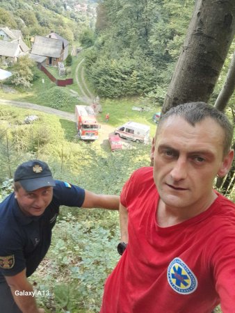 ☝️ За 7 хвилин бригада № 1200 (лікар Микола ФІРІЩАК, фельдшер Олександр БОБИНА, водій Василь БРАНА) була біля підніжжя скель. Решту - 150 метрів стрімкого підйому вгору вузькою стежкою, медики здолали блискавично.