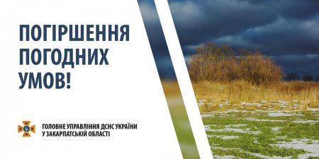 Увага! Впродовж 15-16 жовтня, внаслідок надходження на територію Закарпатської області холодної повітряної маси, очікується ускладнення погодних умов. Вранці та вдень 15 жовтня в горах переважно значні дощі, вночі 16 жовтня в горах подекуди з переходом у мокрий сніг та сніг.