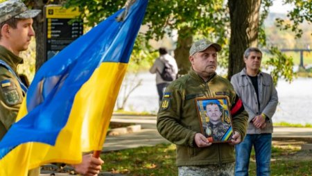 Чин похорону відбувся на набережній Незалежності. Попрощатися з захисником прийшли рідні, близькі, друзі, військові та керівництво міста.