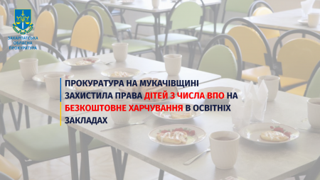 Прокуратура на Мукачівщині захистила права дітей з числа ВПО на безкоштовне харчування в освітніх закладах