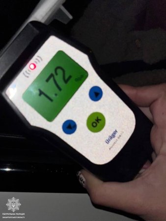 Під час спілкування охоронці поряду помітили у 27-річної жінки явні ознаки алкогольного сп’яніння, на що їй одразу запропонували пройти огляд на стан сп’яніння за допомогою драгера. Результат — 1, 72 проміле, а це у понад 8 разів перевищує допустиму норму алкоголю в крові.