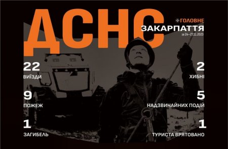 Підрозділами Головного управління ДСНС України у Закарпатській області впродовж 24-27 листопада для оперативного реагування на події та ліквідації їх наслідків, гасіння пожеж, проведення інших рятувальних заходів здійснено 22 виїзди, з яких два - хибні.