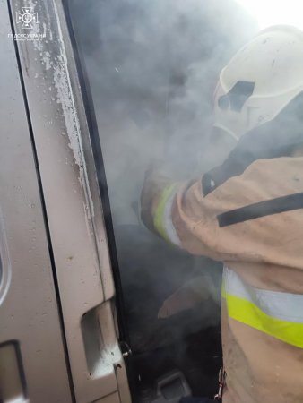На Закарпатті рятувальники гасили палаючий мікроавтобус