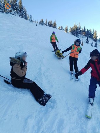 Гірські рятувальники надали постраждалій першу долікарську допомогу та разом з інструкторами підйомника спустили зі схилу на спеціальних ношах.