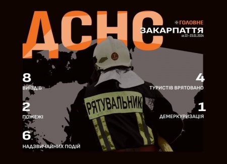 Підрозділами гірської пошуково-рятувальної частини Аварійно-рятувального загону спеціального призначення Головного управління ДСНС України у Закарпатській області з початку року на аварійно- та пошуково-рятувальні роботи здійснено 25 виїздів та виходів у гори, в ході яких врятовано 28 осіб, з яких 13 отримали невідкладну долікарську допомогу. Також 110 туристичних груп (загальною чисельністю 1330 осіб) отримали консультації, зареєстровані або супроводжені туристичними маршрутами.