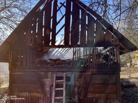 На Рахівщині пожежа наробила біди: корова лишилася без крову, а господар – без надвірної споруди (Фото)
