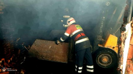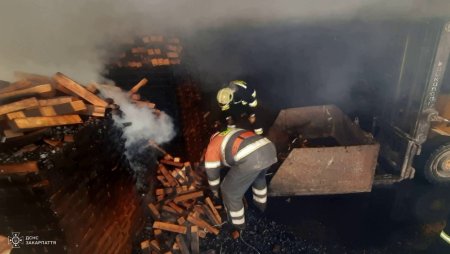 Деревні брекети згоріли, але підприємство від масштабної пожежі врятували закарпатські рятувальники