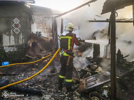 Сьогодні вранці мешканка села Верб’яж на Мукачівщині вийшла погодувати худобу й побачила вогонь у дерев’яній надвірній споруді, що складалася з літньої кухні, комори і дровітні. Поки бійці ДСНС прямували за викликом до місця події, сусіди за допомогою відер із водою пробували стримати поширення полум’я, але безуспішно – воно вже почало перекидатися на житловий будинок.