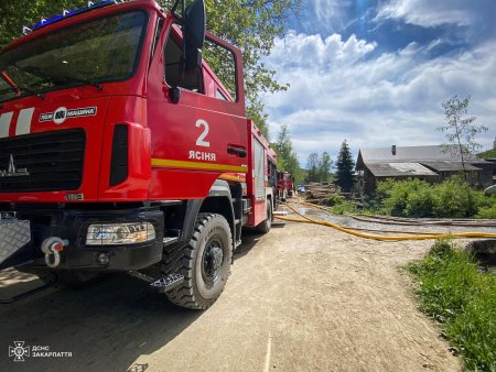 Рахівські вогнеборці ліквідовують значну пожежу на приватному обійсті