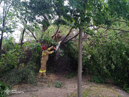 До місця події було направлено аварійно-рятувальне відділення. Рятувальники розкрижували гілки та прибрали з дороги близько 2,3 куб. м деревини. О 14:00 роботи закінчені, рух відновлено.