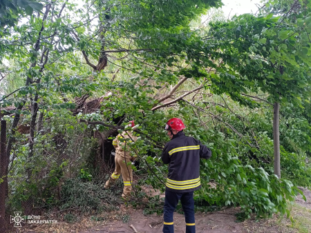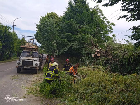 Ужгородські рятувальники прибрали з дороги повалене дерево