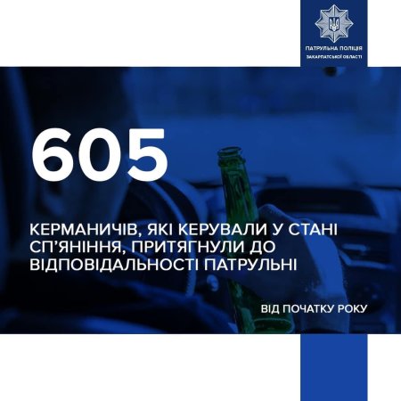 6️⃣0️⃣5️⃣ водіїв притягнули до відповідальності за нетверезе керування патрульні поліцейські Закарпатської області від початку 2024-го року