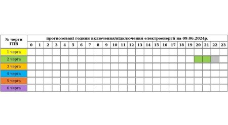 💡Графік погодинних включень/відключень електроенергії на Закарпатті на 9 червня