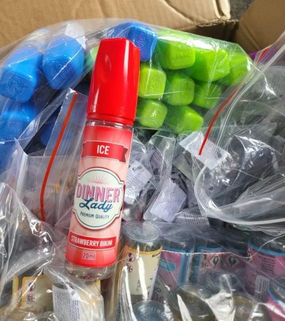 Не задекларовані флакони з рідиною для вейпів у фабричній упаковці, в асортименті (239 шт без вмісту нікотину і 100 шт з нікотином) торгових марок: «RIOT PUNX», «DINNER LADY» та «ELFLIQ», без марок акцизного збору України вилучено. Їх остаточну вартість встановить спеціаліст-експерт. Крім того, митниця скерує повідомлення про протиправне діяння, що містить ознаки злочину за статтею 204 ККУ.