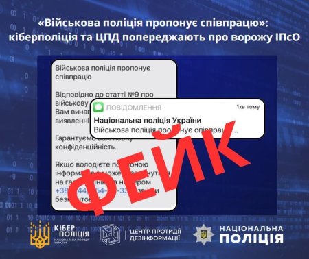 «Військова поліція пропонує співпрацю»: кіберполіція та Центр протидії дезінформації попереджають про ворожу ІПсО