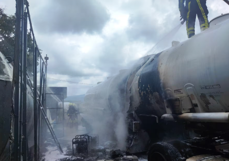 30-річний водій автоцистерни отримав термічні опіки близько 30% тіла. Його бригада екстреної медичної допомоги доправила до лікарні.
