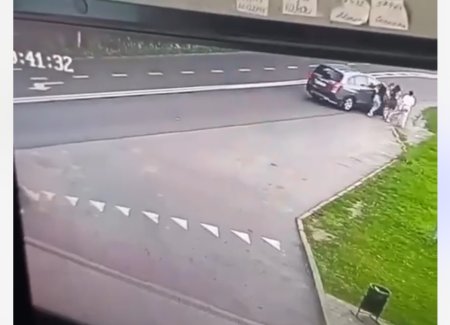 На відео видно, як легковик виїжджає з парковки та, не дотримуючись інтервалу, збиває з ніг двох дівчат.