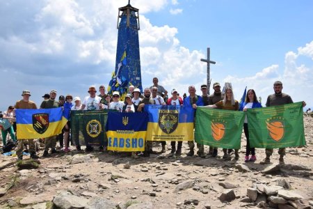 🇺🇦На вершині гори учасники акції встановили прапори України та Державної прикордонної служби, а також прапор з іменами загиблих прикордонників 3 прикордонного загону.