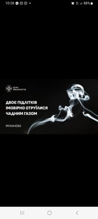 Мукачеві до Обласної дитячої лікарні потрапили двоє юнаків 2008 та 2009 роківУ народження. Як вдалося з’ясувати, їхня мати прийшла після роботи додому й побачила синів непритомними. Пізніше один із них розповів, що вони раптово відчули запаморочення, дзвін у вухах і нудоту. Із попереднім діагнозом отруєння чадним газом їх госпіталізували до реанімаційного відділення. Представники газової служби перевірили оселю й не виявили витоку природного газу. Остаточна причина отруєння підлітків встановлюється