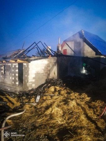 Під час пожежі в ужгородському селі Порошково травмувався 33-річний чоловік. Посеред ночі він виявив загорання на горищі, де зберігалося сіно.