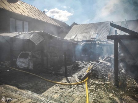 Побачити пожежу - неприємний досвід. А коли горить на твоєму власному подвір'ї — тим паче. Вчора у с. Яблунівка Хустського району на території приватного дворогосподарства зайнялась надвірна споруда. Власник у той час був надворі, аж раптом побачив як димить крівля над будівлею, тож одразу викликав рятувальників. Допоки на місце прямували пожежно-рятувальні підрозділи смт Вишково та м. Тячів, вогонь встиг дістатись до автомобіля господаря Peugeot-306 2007 року випуску та загрожував його власній та сусідській оселі, що розташувалась в двох метрах від осередку займання. Однак перекиданню вогню завадили бійці ДСНС, які по прибуттю подали воду на захист помешкань та водночас розпочали гасіння. Майже за годину пожежу було ліквідовано.