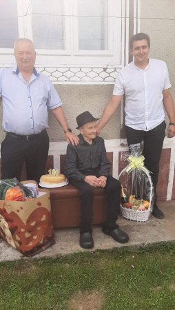 Сьогодні привітати іменинника з таким особливим ювілеєм завітали староста та діловод села Водиця, а також директор і фахівець Центру надання соціальних послуг Великобичківської селищної ради.
