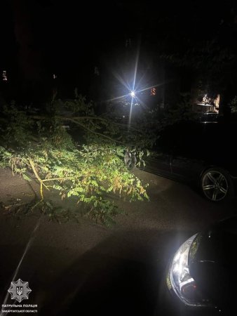Не зволікаючи, патрульні прибули на місце події та прибрали з дороги і з автівки дерево та забезпечили безперешкодний проїзд тією ділянкою. На щастя, авто не пошкоджено.