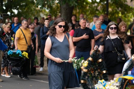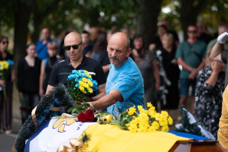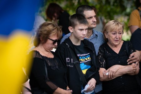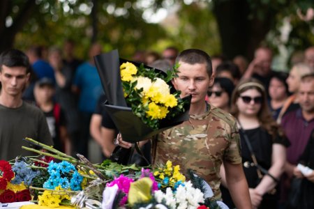 Прощалися із захисником на набережній Незалежності. Віддати шану військовому прийшли рідні, друзі, колеги, міський голова Богдан Андріїв, військові, містяни.