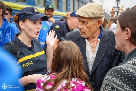 На вокзалі на них чекали представники обласної адміністрації, волонтери різних громадських організацій і рятувальники. Разом вони допомогли людям із багажем, видали гуманітарну допомогу та їжу в дорогу і посадили в автобуси, які відвезли гостей Закарпаття у визначені місця.