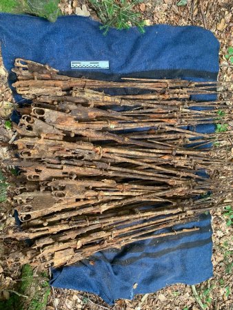 Патрулюючи українсько-польську ділянку кордону, військовослужбовці відділу «Стужиця» Чопського загону виявили за лінією інженерних споруд місце схрону вогнестрільної зброї часів І Світової війни. Прикордонники помітили деталі гвинтівки, які виднілися з-під землі.