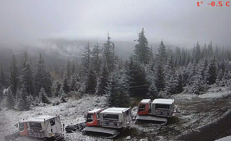 Місцеві гірськолижні курорти, зокрема популярні серед туристів, вже активно готуються до сезону, перевіряючи техніку та готуючи маршрути для відпочивальників. Снігоходи та снігоочисна техніка готові до активної роботи, як показано на фото.