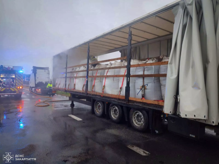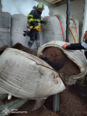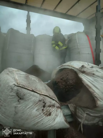 4 жовтня о 08:15 рятувальники отримали виклик про пожежу в причепі вантажного автомобіля Volvo. Подія трапилась на трасі Київ-Чоп біля села Соломоново Ужгородського району. Водій вирішив зупинитися для відпочинку і помітив, що з-під тенту причепа, в якому він перевозив мішки з макухою, йде дим. Незволікаючи, чоловік звернувся до Служби порятунку.