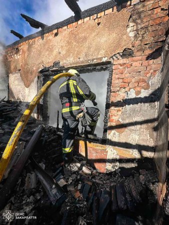 І ввечері того ж дня до Служби порятунку надійшло повідомлення про пожежу в закинутому житловому будинку на вул. Грушевського в Мукачеві. Приїхавши за викликом, бійці ДСНС виявили на порозі кімнати чоловіка, який облаштував занедбану будівлю під житло. Його винесли на свіже повітря й викликали бригаду екстреної медичної допомоги. Саму ж пожежу рятувальники ліквідували за 45 хвилин. Вогонь знищив перекриття на площі 5 кв.м і пошкодив кімнату площею 25 кв.м.