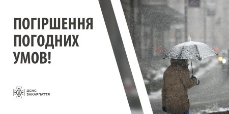 Синоптики попереджають про погіршення погодних умов! Вранці та вдень 22 листопада на більшій частині території області та по м. Ужгороду очікується значний (7-19 мм за 12 год. і менше), в центральних та східних районах сильний мокрий сніг та сніг (20-29 мм за 12 год. і менше) зі збереженням ввечері 22 листопада у гірській частині, вдень на низовині подекуди з дощем. Вранці та в першій половині дня посилення вітру до 15-20, на високогір'ї 25-30 м/с.
