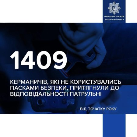 Від початку 2024-го року закарпатські патрульні винесли 1️⃣4️⃣0️⃣9️⃣ постанов за їзду без пристебнутого ременя безпеки.