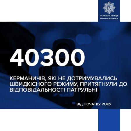 4️⃣0️⃣3️⃣0️⃣0️⃣ водіїв, які порушили швидкісний режим, притягнули до відповідальності патрульні поліцейські Закарпаття упродовж 2024-го року
