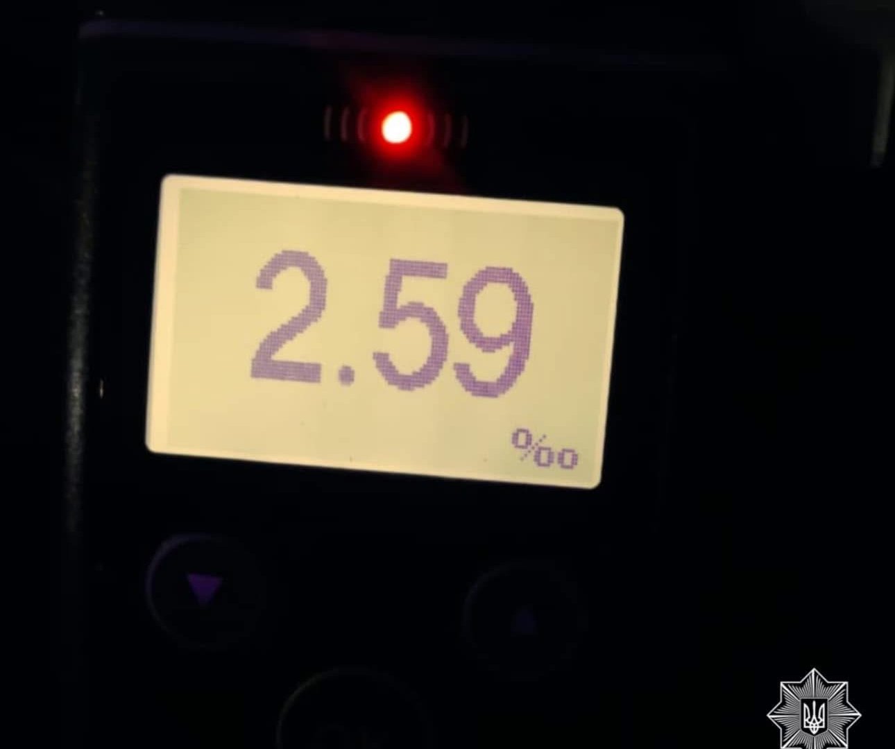 Під час спілкування патрульні помітили у керманича ознаки алкогольного сп’яніння, на що йому запропонували пройти тест, результат якого виявився позитивним — 2,59 проміле, а це у понад 12 разів перевищує допустиму норму алкоголю в крові.