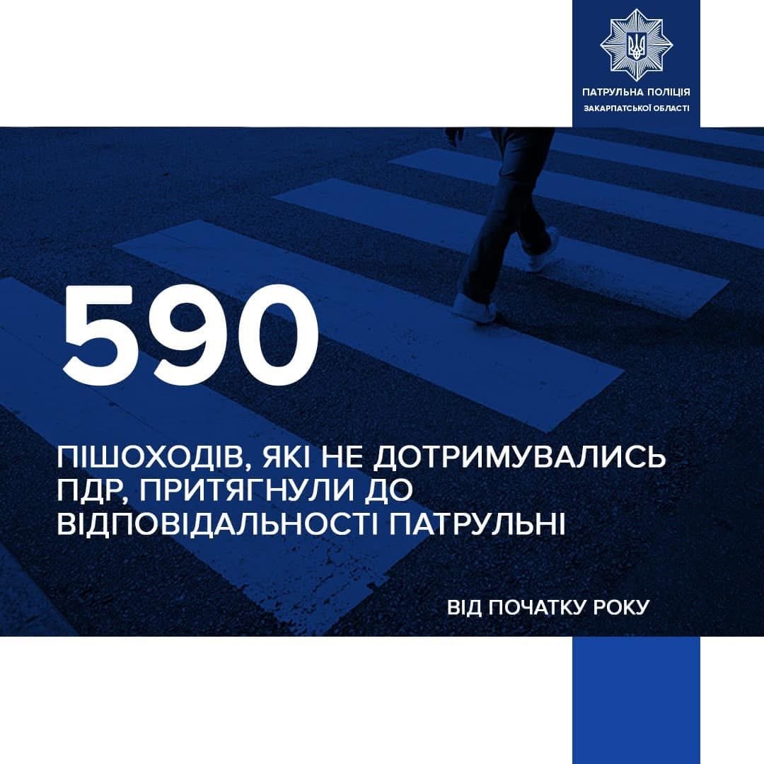 З початку 2025 року закарпатські патрульні притягнули до адміністративної відповідальності 590 пішоходів, які порушили правила дорожнього руху.