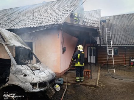 Неспокійний вечір: пожежа знищила мікроавтобус, але будинок вдалося врятувати